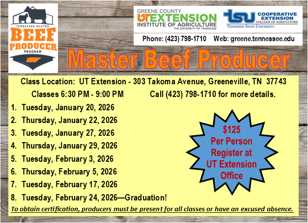 Master Beef Producer certification will qualify producers to receive a higher percentage of financial assistance with the Tennessee Agricultural Enhancement Program.